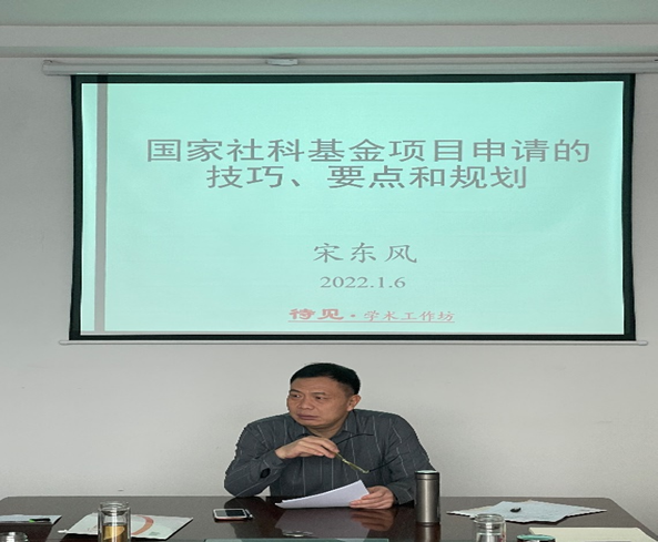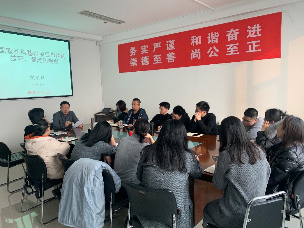 2022年1月6日,大发体育 “待见·学术工作坊”举办了第七期学术研讨活动。教育经济与管理教研室主任宋东风博士作了题为“国家社科基金项目申请的技巧、要点和规划”的学术分享,本次活动由行政管理系主任刘海燕博士主持。