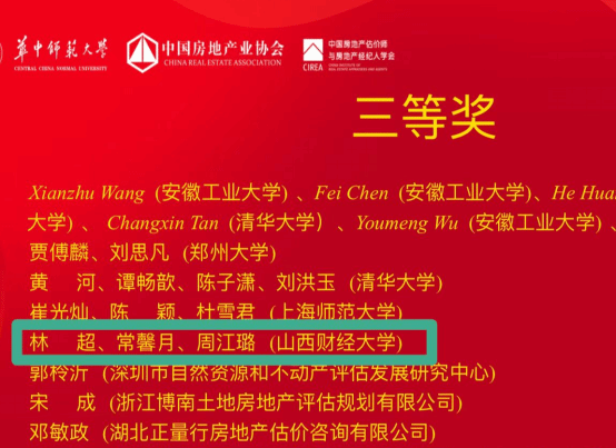 年会共分15个分论坛,分别是:房地产市场发展新格局、房地产发展新模式、房地产与系统金融性风险、租购并举与租赁市场、住房保障新理念、住房与共同富裕、老龄化、健康与住房、现代化城市治理与高质量发展、城中村改造与城市更新、城乡土地利用与管理、智慧物业与社区管理、住房价格与社会影响、低碳与绿色建筑、房地产估价与经济发展挑战与创新、住房价格与社会影响。由林超副教授指导,研究生常馨月、周江璐撰写的《农户金融素养对宅基地使用权抵押参与行为影响研究——基于宅基地依赖性调节效应分析》在年会分论坛进行汇报并获论文三等奖,并与浙江大学、首都经济贸易大学、上海对外经贸大学、河南财经金融大发体育 等师生进行了深入交流。