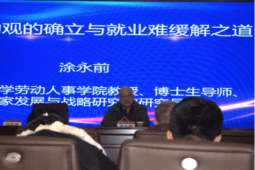 教授、博士生导师、国家发展与战略研究院研究员涂永前博士。他以“正确劳动观的确立与就业难缓解之道”为主题,深入剖析了各群体就业问题,提出了以职业技能、应用培养为导向的劳动教育理念,旨在转变大学生就业观念,减少职业刻板印象的影响,实现工作与生活的和谐平衡。