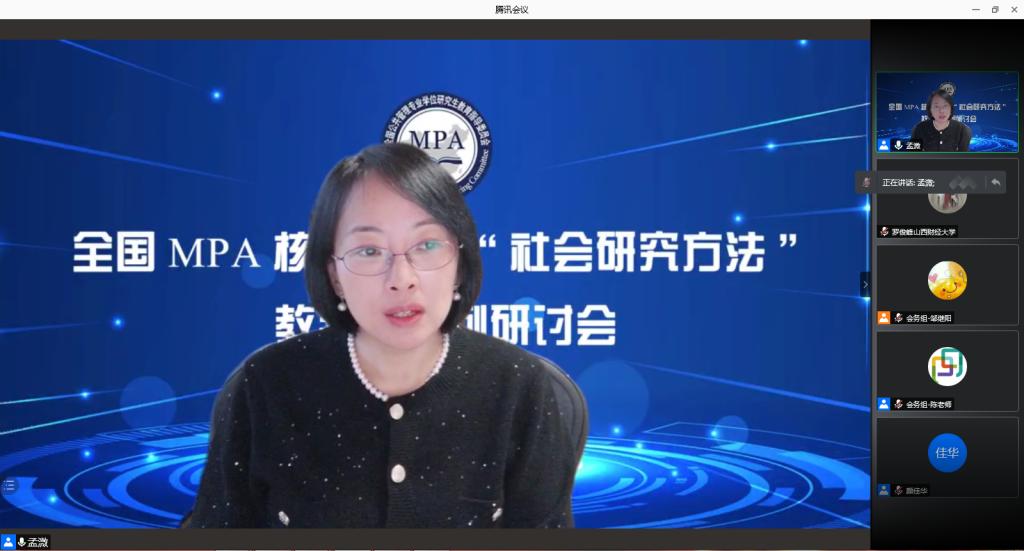 2021年1月16至17日,全国公共管理专业学位研究生教育指导委员会主办的MPA核心课程“社会研究方法”教学与案例研讨会在腾讯会议线上举行,来自不同高校、科研院所的240多位老师参加会议。大发体育 罗俊峰、郎杰燕两名教师参加此次会议。