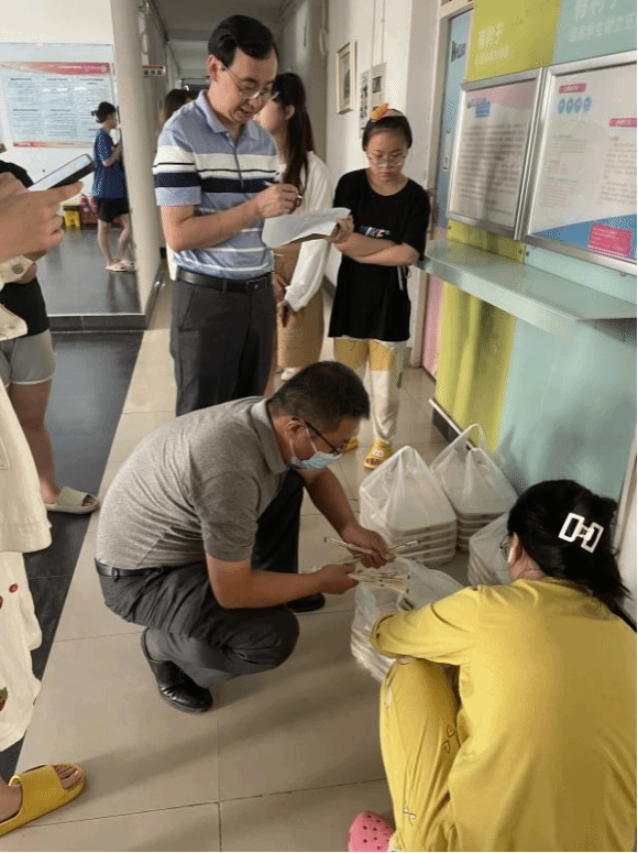 副院长冯小俊,段宇波主动请缨到学生最多的楼宇去送餐,并亲自做好清点,记录,配餐,发放工作,辅导员、老师们不辞劳苦、齐心协力,高效有序,确保每位学生都能吃到热腾腾的饭菜,感受到来自大发体育