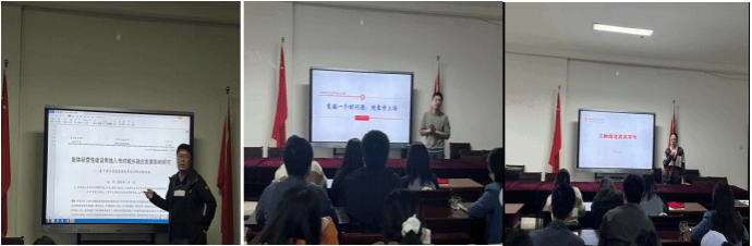 提前安排三位优秀青年博士教师以如何撰写学术论文为主题进行了充分准备,并在颁奖仪式上对师生进行了讲解指导。林超副教授以不同学科发表的高水平论文为例,对不同学科学术论文的研究范式进行了深入讲解;靳永广博士以如何发掘一个好问题为切入点,基于现象学立场,分析了学术研究中包含的各种问题类型,以及如何运用特定案例研究事物之间的因果关系;郎杰燕博士就文献综述及其写作进行了重点讲解,侧重对如何检索高水平文献和挖掘文献价值,以及如何对文献观点进行凝练、归纳和述评进行了深入分析探讨。
