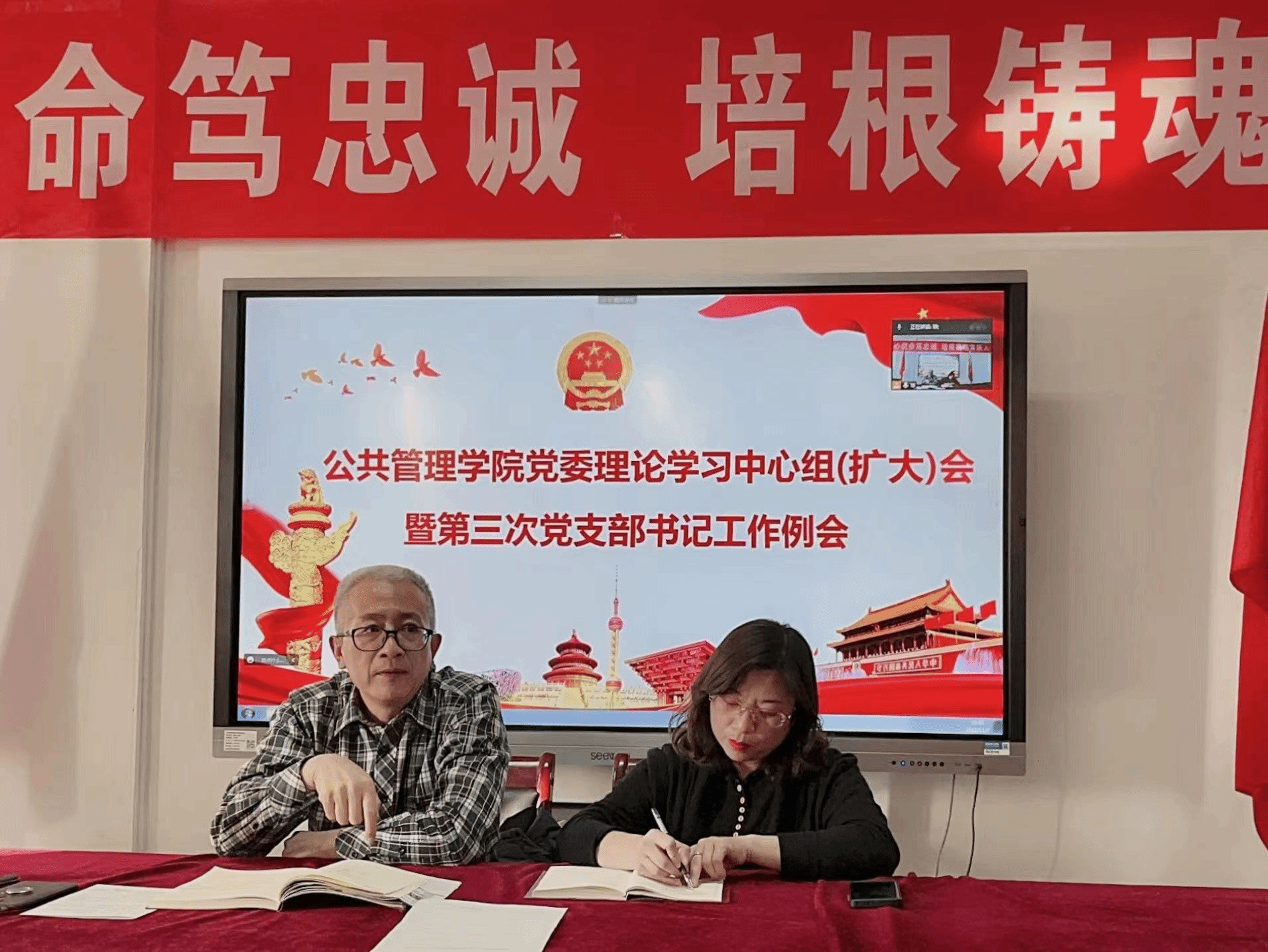班子成员、专职组织员,党支部支部书记、支部委员,教研室主任,团学干部和学生党员代表参加学习。