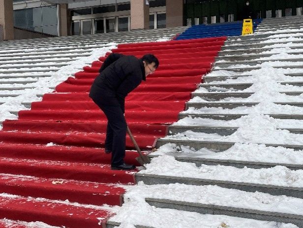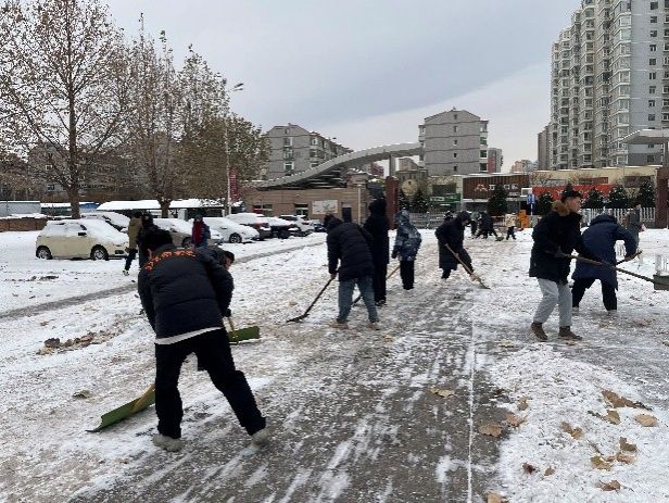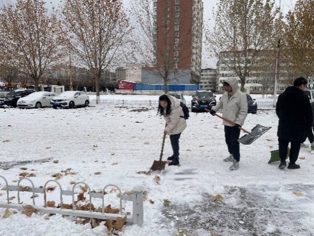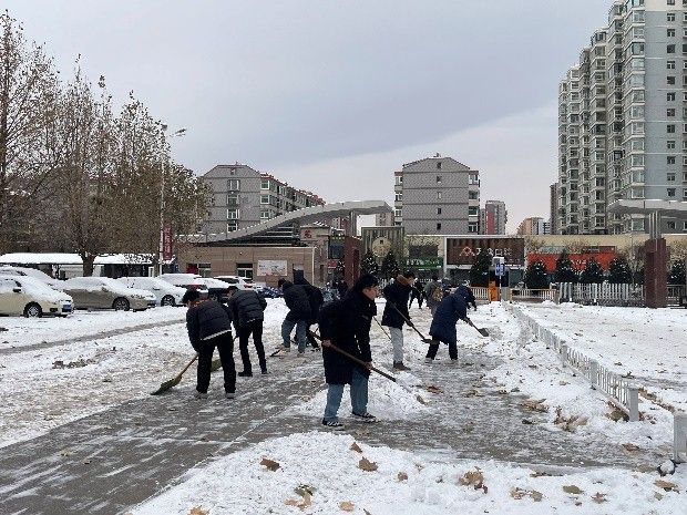 下午两点,大家齐聚立信楼门口阶梯,用除雪工具将台阶上和路面上的积雪清理得干干净净,为大发体育师生开辟出一条条安全的路径。在此过程中,同志们满怀热情,自由组合,齐心协力,充满干劲,以极高的效率出色地完成了除雪任务。在热火朝天的劳动中,大家不畏严寒,奋勇向前,争当先锋模范的带头兵,在深耕奉献精神的过程中,充分发挥中国共产党乐于奉献、服务群众的优良传统,发扬党全心全意为人民服务的宗旨。