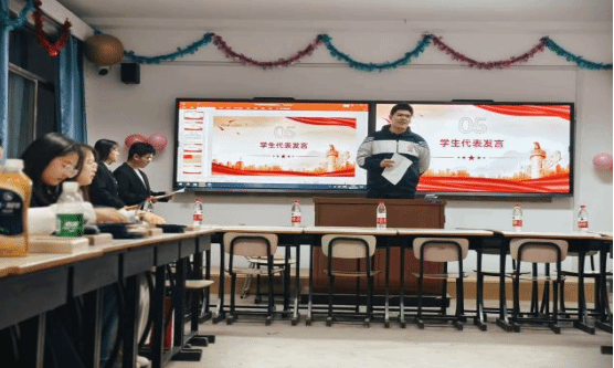 同学们齐诵《少年中国说》,整齐激昂,豪情万丈,每一个字都注入了青春的活力与力量,提醒在场的每一个人要将个人成长与国家发展相结合,以先辈为榜样,在未来的人生道路上积极进取,以青春活力书写对国家的忠诚与热爱。