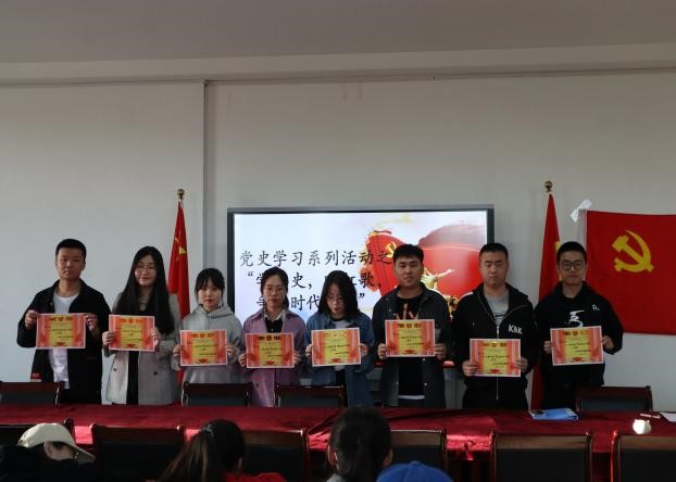 辅导员为获奖选手颁发了党史书籍、奖状、书签以及其他纪念品。获得微视频大赛一等奖的高嫄团队谈到,通过参加一系列的党史活动,使自己在思想上、行动上明确了前进方向,感受到了良好的党史学习氛围,进一步深化了对党史学习教育重大意义的领会和理解,原来学习也可以以多种形式去表达和呈现。