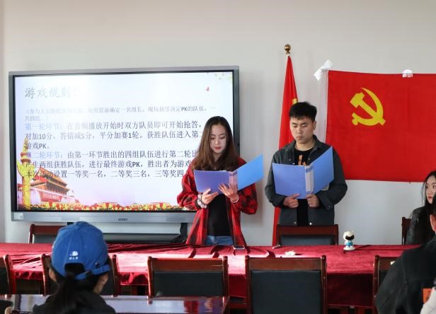 举办了“红心向党,一站到底”党史知识竞赛。比赛采用场上参与者分别单独对战答题的方式进行,最终以积分制获胜。这次竞赛突破原有传统知识竞赛的形式,融入了当下最流行的双方选手攻擂模式,既有知识性又富于娱乐性,比赛实效性大为提高,进一步提高了同学们的学习党史的兴趣和觉悟,推动党史学习再上新台阶。